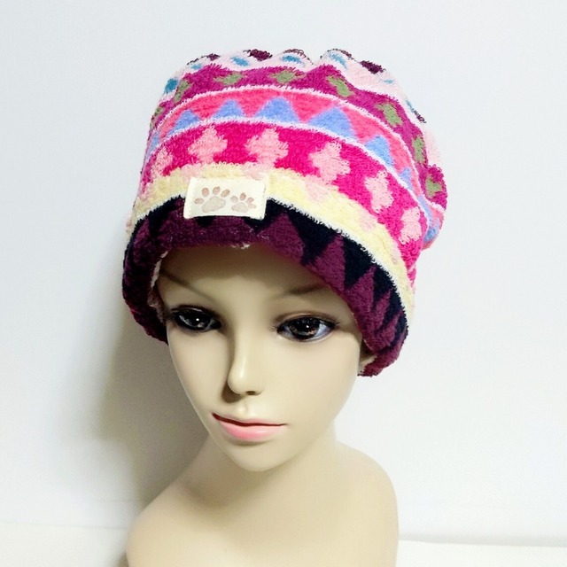 タオルの帽子★ケア用・スイム用 ガン患者さんのケア用に厚めのタオルで作った帽子です。 脱毛した頭皮への負担やストレスが軽減できるように、また手軽に洗濯でき、いつも清潔を保てるよう、綿100%の高級タオルを使用しています。 軽い着け心地でストレスフリー カラフルでオシャレな北米柄で気分もup 蒸暑い時 頭皮の汗を吸収します エアコンで冷え冷えの頭皮を保護します 就寝時の抜け毛もキャッチします サイズ 頭囲:約58cm・深さ約15cm 素材:綿100% (薄手のタオル地) 色柄:カラフルポップ ★これまでの作品は肉球タグのみでしたが今回より ・肉球タグ・chigutickタグ・タグなし よりお選びいただけます タグなしとは何も付けない帽子のみのお届けとなります。 注文時に3種類よりお選びください。 *タオル地ですので伸縮性はありません。脱毛した患者さん用に、あまり大き過ぎないサイズとなっております。 ですので、お子さまの水泳やお風呂上がり時の髪の吸水にも適しています♪ ★ケア帽子の複数注文につきまして★ 洗い替えやお友達と分と一緒になど、まとめてお買い上げいただく方が増えています。 商品数が変わると送料も変更となります。ひとつひとつ個別に注文いただきますと送料の負担も大きくなりますので損をしない為にもコメント欄にご希望の品番を伝えていただきますと「お客様専用ページ」をお作りいたします *ケア帽子はボランティアの一貫として取り組んでいる商品ですので送料は最小限に抑えた発送方法を優先致します。個別注文時に発生する送料の差額はお返しする事ができませんのでご理解いただけると幸いです ★ラッピングについて★ こちらの商品はラッピングも対応します。 プレゼントには、簡単ではございますがラッピングも致します。ご希望の方は備考欄にてお申し付け下さいね♪