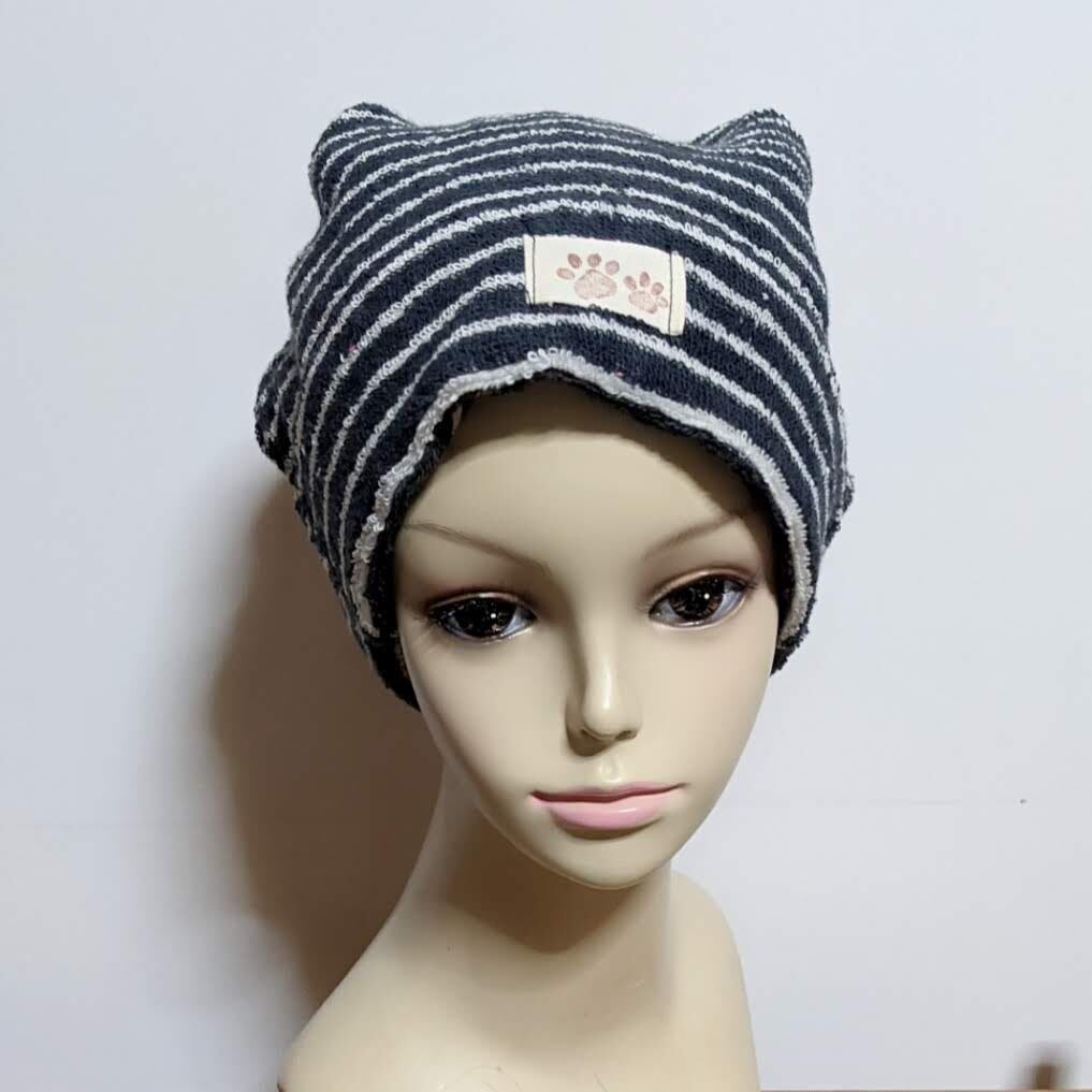 No.120 タオルのケア帽子★ネコ耳★ニトリ ボーダーライン