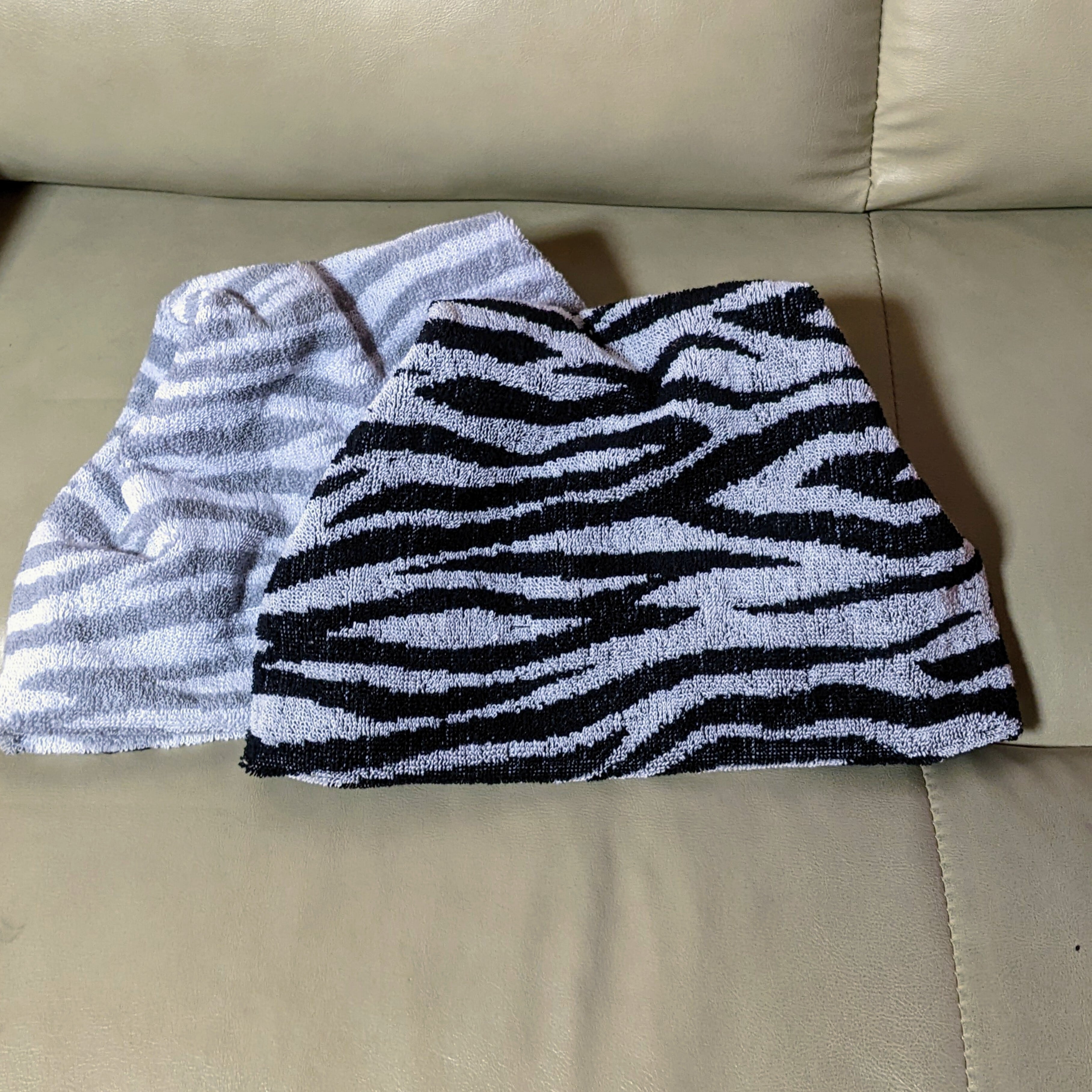 No0105 ★大人気アニマル柄タオルのケア帽子★猫耳★ゼブラグレー