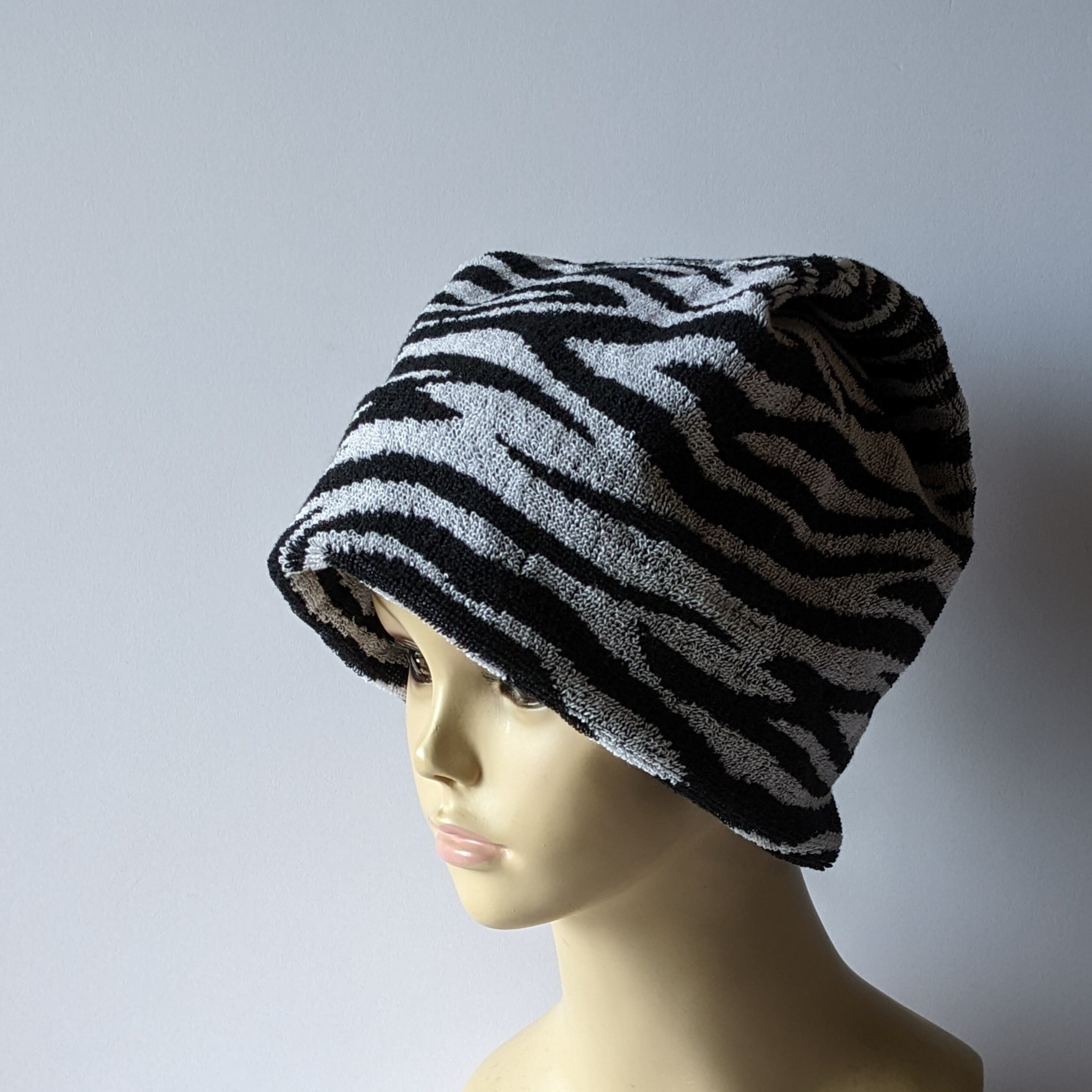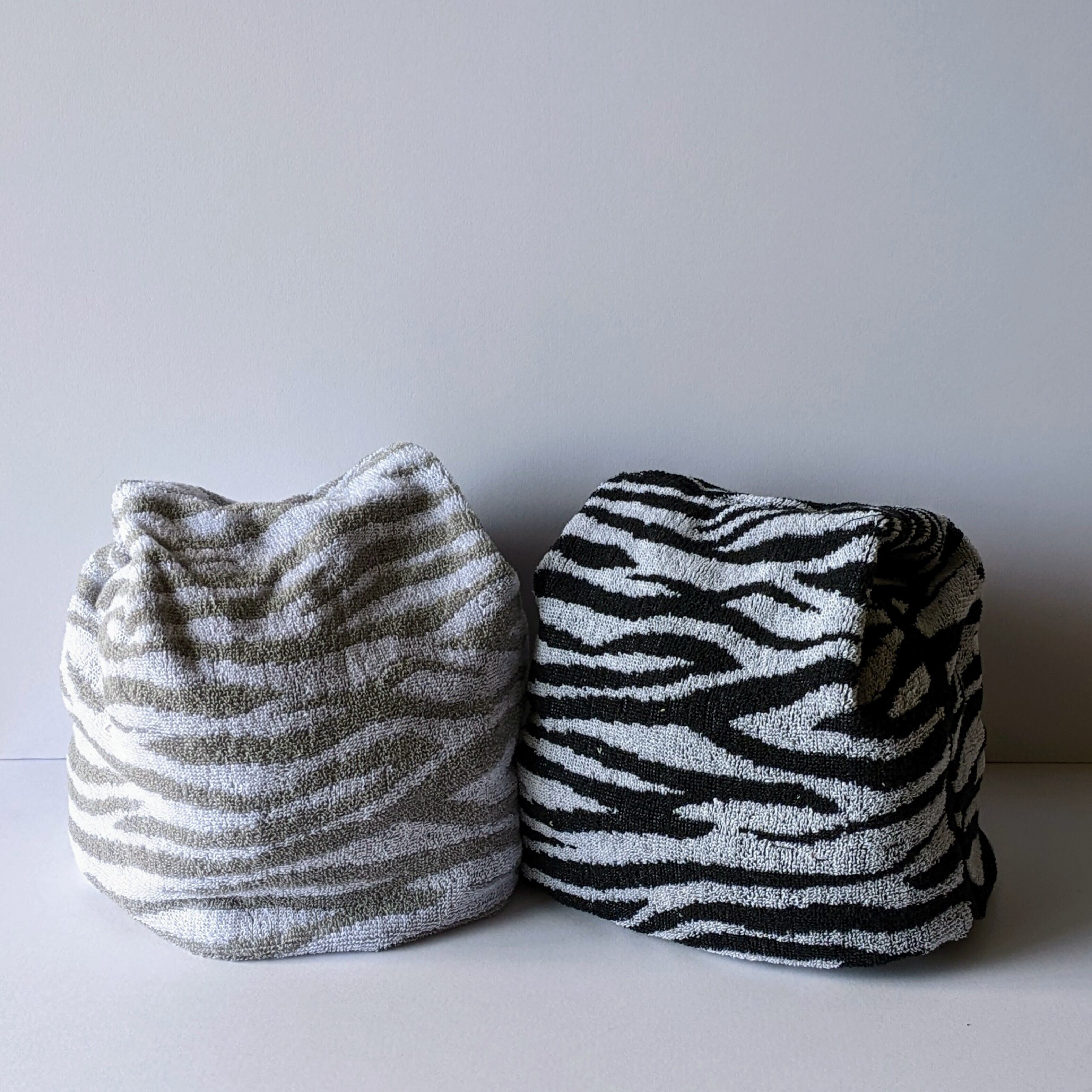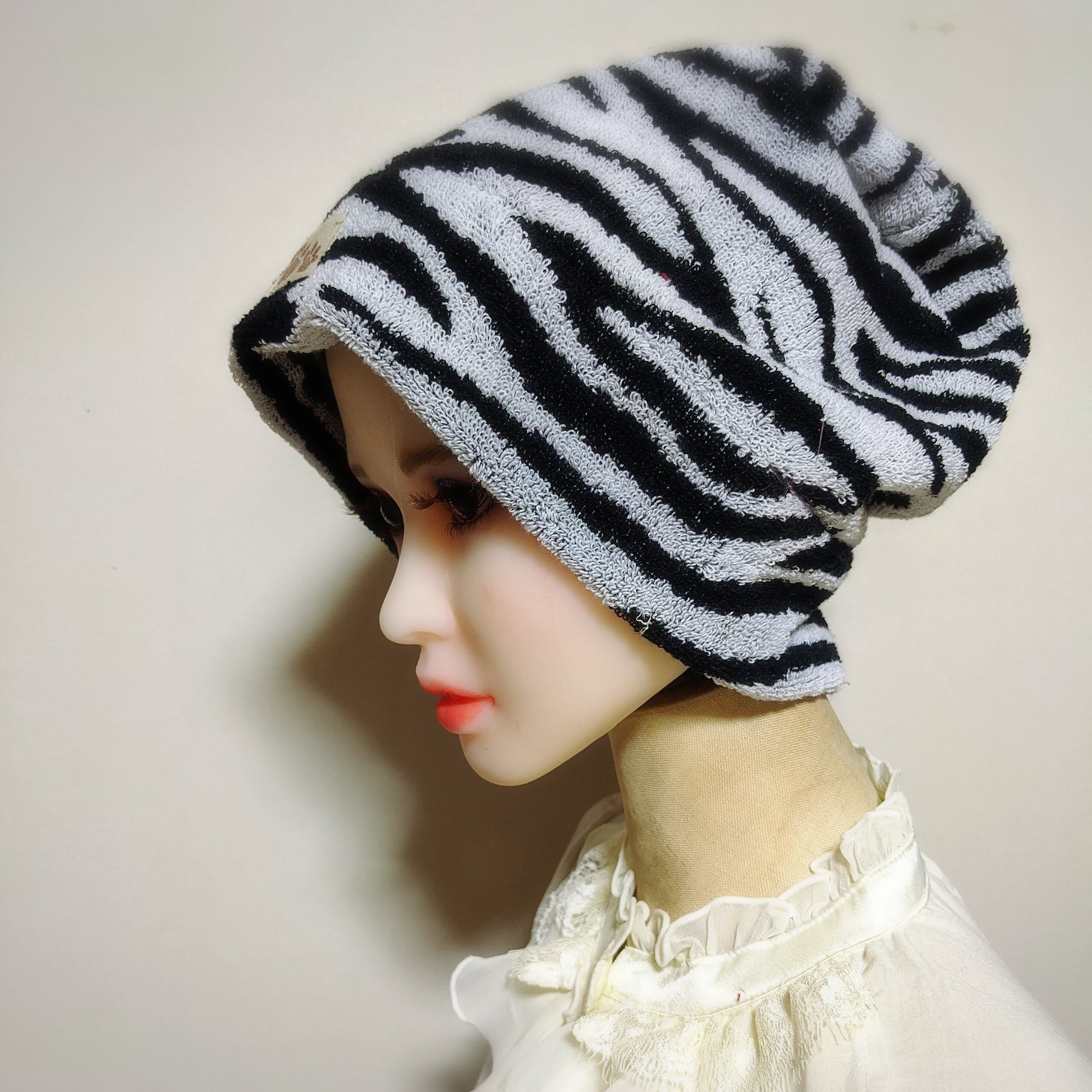 No0104 ★大人気アニマル柄タオルのケア帽子★猫耳★ゼブラブラック
